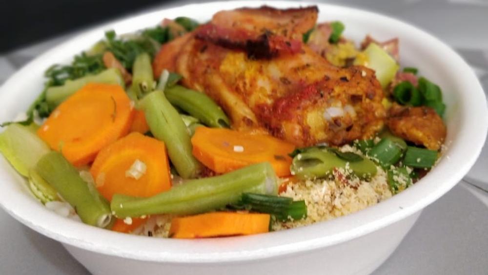 Marmita servida com o capricho da Cozinheira, comida sertaneja bem saborosa e temperada, vai com 2 tipos de carne, acompanha salada separada e um brinde pelo pedido.